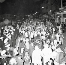 .Formaat : 12,5 x 19 cm - Groep 49 "Het Gevolg van Koning Rat" op het Wapenplein nabij het Feest- en Kultuurpaleis