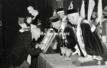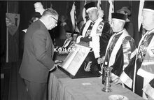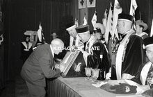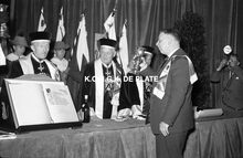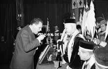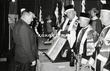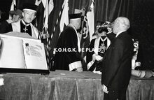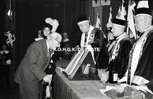 Negatief : 6 x 9 cm. - Emile Bulcke wordt ridder van de "ConfrΓ©rie van de Rat Mort"
