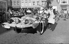 Negatief : 6 x 9 cm. - Aan de stoet waren er ook prijzen verbonden. Samenstelling van de jury : Charles Feys, Majoor De Taye, J. Brackx, R. Cools, G. Sorel, R. Servais en E. Willaert. (Niet in die volgorde op de foto). Hier op het Wapenplein