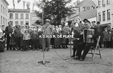 Negatief : 6 x 9 cm. - De Harmonie van Oostburg in de Jozef II-straat.
