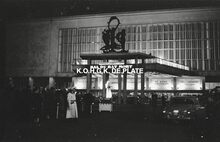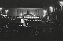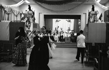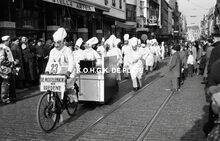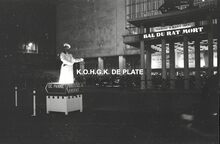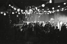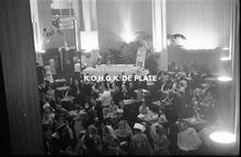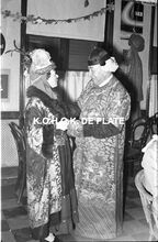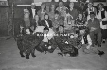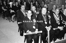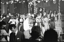 Negatief : 6 x 9 cm. - Burgemeester Adolf Van Glabbeke behoorde tot de eerste 20 Β ridders van de "ConfrΓ©rie van de Rat Mort". De ceremonie ging door in het Casino-Kursaal.Β Hier, links vooraan, Β de burgemeerster.
