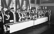 Negatief : 6 x 9 cm. - Plechtige ontvangst op het dienstdoend stadhuis (gerechtshof)