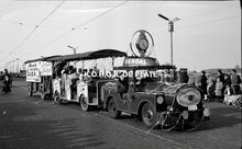 Formaat : 12,5 x 19 cm. - Hier op het Wapenplein. Burgemeester Adolf Van Glabbeke en zijn echtgenote en schepen Maurice Quaghebeur genieten