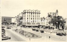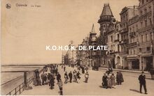 Nels. - De Albert I-promenade gezien vanaf het Groot Strand. Links, gedeelte van de westgevel van de vierde Kursaal, nabij de Kursaal-Westhelling, met op de hoek het "Hotel Wellington" en ernaast de flatgebouwen gebouwd na de Tweede Wereldoorlog. In het midden, de Ijzerstraat.Β