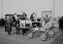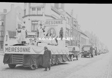 Negatief : 4 x 6,5 cm. - Praalwagen van de bierbrouwerij Meiresonne uit Gent in de publiciteitskaravaan op de Torhoutsesteenweg