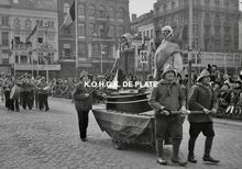 Negatief : 4 x 6,5 cm. - De praalwagen admiraalschip "Popham" bemand door leden van de "Koninklijke Maatschappij de Vereenigde Karabijnschutters" uit Bredene