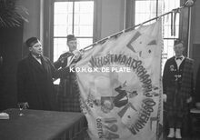 Negatief : 4 x 6,5 cm. - Inhuldiging van het vaandel van de whistmaatschappij "Ostendia" in het dienstdoend stadhuis (gerechtshof)