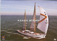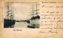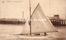 Postkaart Huys A. - Vooraan, in het Visserijdok, de Oostendse tweemastsloep "Nele"