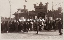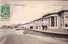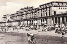 Nels. - Ern. Thill, Bruxelles. - De Koninklijke Gaanderijen en het Grand Hôtel du Palais des Thermes gelegen langs de Zeedijk. Strandrecreatie op het Groot Strand. Het "Grand Hôtel" is gedeeltelijk gebouwd op de Koninklijke Gaanderijen en maakt deel uit van het Palais des Thermes. Het werd ingehuldigd door Koning Albert I en Koningin Elisabeth op 28/06/1933.