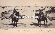 Le Bon. - Ostende - La pêche. - Vooraan, twee vissersvrouwen met hun steeknet of stootkor. Een steeknet is een driehoeking strandnet met een kuil dat door middel van een houten stok over de bodem vooruit wordt geduwd. Op hun rug dragen zij een ovale rugmand om de garnalen in te bewaren, meestal nadat ze eerst gezeefd zijn.