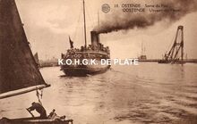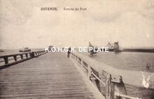 Albert, N° 10. - Ostende - Sortie du port. Oostende - Uitvaart der Haven. - Rechts, een drijvende bok. Op het einde van het Ooststaketsel, de tijseinpost.