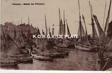 Ostende - Bassin des pêcheurs. - Vissersvaartuigen gemeerd in het Schuildok. Links, de Visserskaai.