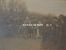 Formaat : 8,5 x 12 cm. - Verkoop van de vis. De afslag wordt verricht door de afslager, die vooraan staat en de te koop aangeboden vis luid afroept in afdalende reeks. Wie van de potentiële kopers het eerst "mijn" roept, heeft de vis gekocht. - Map 023 A-47h