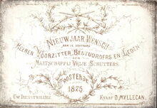 Formaat : 8,5 x 12 cm. - Nieuwjaar Wensch aan de Achtbare Heeren Voorzitter, Bestuurders en Leden der Maatschappij Vrije Schutters.