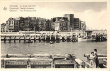 Nels. Ern. Thill, Bruxelles, N° 35. Ostende - La Digue (côté Est). Oostende - Zeedijk (Oostkant). Ostend - The Promenade (Est). - Zicht van de havengeul vanaf het Ooststaketsel. Het Weststaketsel met ernaast het Klein Strand en op de achtergrond de Albert I-promenade.