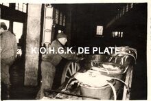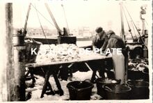 Formaat : 8,5 x 12 cm. - Verwerking van de vis. Na de verkoop wordt de vis per viskar naar de pakhuizen gebracht voor verwerking.