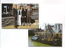 Formaat : 9.5 x 14 cm. - Met vooraan, reder Willy Versluys. Op de achtergrond, de Vismijn. O.32 "Petrus Pictor". Polyester vissersvaartuig gebouwd in 2007 op de scheepswerf Gemini Catamaran Workboats LTD voor Ishtar Rederij BVBA. Reder : Willy Versluys. Noël Dujardein, peter en Viviane Coudeveille, meter. Bruto tonnemaat : 21 en netto tonnemaat : 6. Lengte : 11,78 m. en breedte : 5,15 m. Voorzien van een motor Daewoo met een vermogen van 221 kW. De visuitrusting van het vaartuig : met plankennet/bordernet voor de passieve visserij. Vanaf 2010 als N.32 "Jolly Jumper" en uitgerust voor de warrelnettenvisserij. In 2014 werd dit schip voor de laatste maal opgenomen in de Officiële lijst der Belgische vissersvaartuigen.