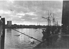 Formaat : 10,5 x 15 cm. - O.100 "Emilie" in de havengeul. Op de achtergrond, de tijseinpost op het Ooststaketsel.