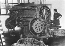 Formaat : 28,5 x 23 cm . - Herstellingswerken aan de toren van het Stadhuis (toen nog op het Wapenplein) in het Interbellum.