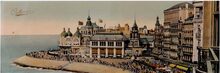 Formaat : 13,5 x 41 cm. - Zicht op de westelijke gevel van het derde Casino-Kursaal gelegen langs de Zeedijk. Foto werd genomen vanuit de hoogte.