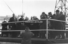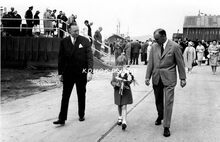 De meter van het vaartuig, de echtgenote van baron Wilfried de Brouwer, na de tewaterlating op weg naar de receptie. - Map 2009/0846-2