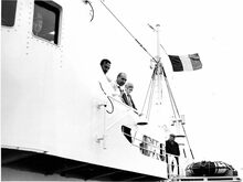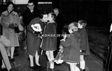 Na de tewaterlating, de meter van het vaartuig, mevrouw Dewinter, echtgenote van de directeur van de scheepswerf, krijgt bloemen. - Map 2009/0847-3