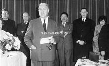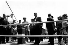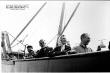 Plechtigheid naar aanleiding van de tewaterlating. Links, Prosper Vandenberghe. - Map 2009/0842-6