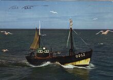 Nels. - De O.111 "Nathalie" met op de achtergrond een pakketboot van de Oostende Doverlijn