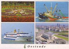AVM. - Het bloemenuurwerk in het Leopoldpark. Het kustvissersvaartuig O.782 Nance. Het cruiseschip "Seastar". De Wellingtonrenbaan