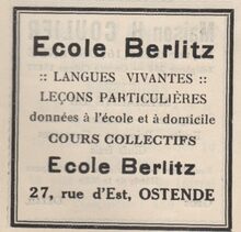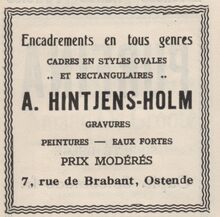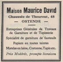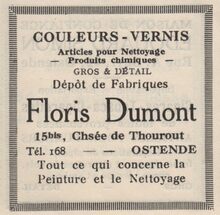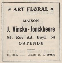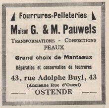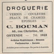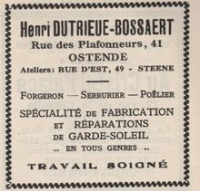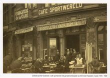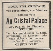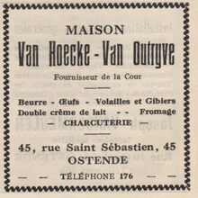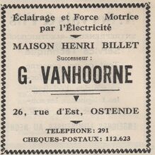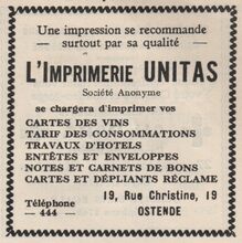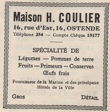 (Café Koophandel). En face de la gare. Spécialité de Homards à l'Américaine. Propriétaire : Carolus-Brys. Salle spécialement aménagée pour banquets, noces et fêtes