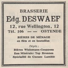 Groot- en kleinhandel in bier, gesticht in 1888 door de gebroeders Edgar en Leopold Deswaef. Toen deze laatste zich in 1927 uit de zaak terugtrok zette zijn broer ze alleen voort. Edgar Deswaef overleed in 1933. Zijn zoon Edgar jr. volgde hem op. Hij wordt thans bijgestaan door zijn schoonzoon P. Ente. De firma is concessionaris voor de kuststreek van Knokke tot Westende van de brouwerij Wielemans-Ceuppens, Brussel (hoofdmerken "D.B. Urtyp" en "Wiels") en van de "Brasserie de la Marine". Zij stelt 10 personen tewerk. In : Dit is West-Vlaanderen : steden, gemeenten, bevolking. Flandria, 1963. p. 1295