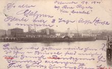 Ostende - Gare maritime. -Β Raderstoomboot Β "Princesse Henriette" 1888-1920. - Aangemeerd nabij het Zeestation. Rechts, de Oude Vismijn, ook "De Cirk" genaamd.