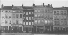Tweede gedeelte van de huizenrij tussen de Nieuwstraat (links) en de Cirkelstraat (rechts). Op de foto van links naar rechts : Het Hotel Chatteris, het cafΓ© Au Belgica, de cafΓ©-friture Leopold III en het CafΓ© Arthur