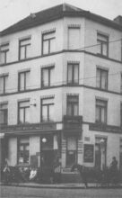 De vroeger goed gekende Confiserie Van Sevenant. Deze zaak was gelegen in de Kaaistraat nummer 29 en werd opgericht door de heer Charles Van Sevenant. Voor het huis poseren de kinderen van Charles Van Sevenant : links Georges en Julien en rechts, op de voorgrond, Marie en Berthe.
