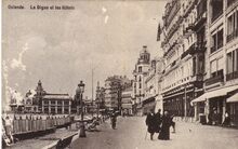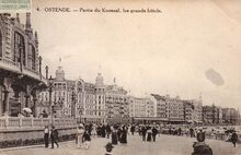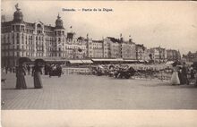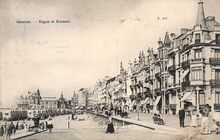 Ostende -Β La Digue et les HΓ΄tels. - De Zeedijk, met rechts, de grote hotels en links, het Groot Strand. Op de achtergrond, de westgevel van het derde Kursaal.