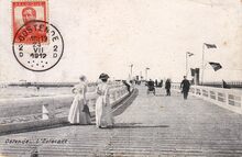 [Neurdein], ND Phot, nr.80. - Ostende - La Digue de Mer et la Plage. - Oostende tijdens de zomer in de Belle Epoque. Dames met parasols flaneren op de Zeedijk. Strandrecreatie op het Groot Strand. Vooraan, zien we het voorname "Hôtel Continental" op de hoek van de Berlijnstraat en de Zeedijk. Na de Eerste Wereldoorlog werd de Berlijnstraat, in 1919, gewijzigd in Ijzerstraat.