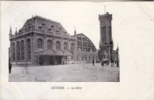 VED. - Ostende - La gare. - De hoofdingang, gelegen langs de Vandersweepplaats op de wijk Hazegras