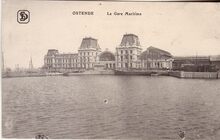 Postkaart S.-D. - Ostende - La gare maritime. - Vooraan, het eerste handelsdok