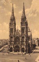 Postkaart D.W. - Ostende - L'Eglise St. Pierre et Paul. Pieter en Pauluskerk. - Op de achtergrond links, "Hotel Pension Leune", Sint-Pietersstraat 11