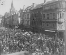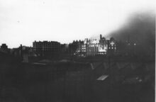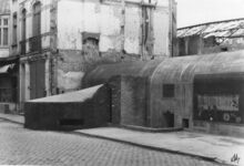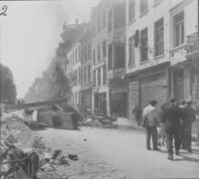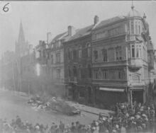 De inboedel van lingeriewinkel J. Denys- Winnock "In 't Schip", Alfons Pieterslaan 104, verdacht van collaboratie, wordt op straat gegooid en in brand gestoken