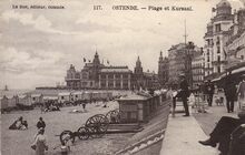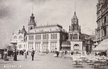 Postkaart VO-DW. - Ostende - Kursaal. - De westgevel van het derde kursaal, gelegen langs de Zeedijk, nabij "Petit Nice".