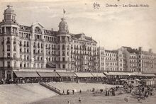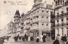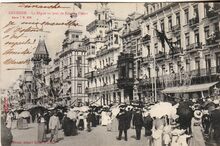 Phototypie Bergéret et Cie, Nancy, N° 26. - Ostende - La digue. - De Zeedijk, met de grote hotels, ten westen gelegen van het kursaal, waarvan links een detail