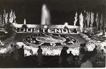 De muziekkiosk in het Leopoldpark. Rechts tussen de bomen de Trinkhall