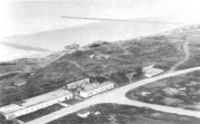Walschaerts 121. - Ostende - Sur L'Estacade. On the stockade. - Foto genomen op het einde van het Weststaketsel. In de achtergrond links, de noodvuurtoren op de Oosteroever, opgericht na de Eerste Wereldoorlog. Van 1920 tot 1926 was de noodvuurtoren in gebruik.