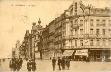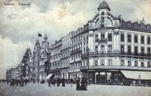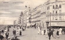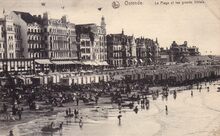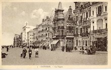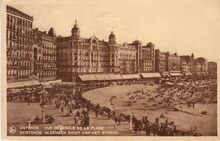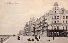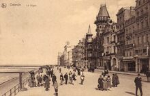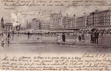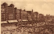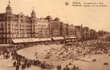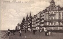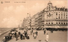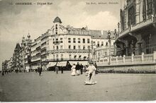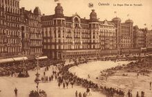 De ZeedijkΒ gezienΒ vanafΒ de Kursaal-Oosthelling. Op de hoekΒ met de Kursaal-Oosthelling, hotel Royal Belge