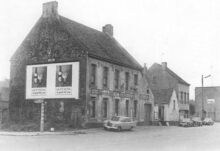 Afbraak van de "Kredietbank", gelegen op de hoek van de Kapellestraat (links) en de Wittenonnenstraat (rechts). Het nieuwe bankgebouw werd ingehuldigd op 5 november 1976