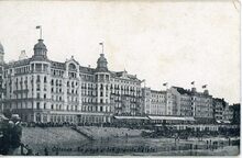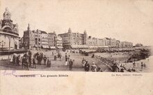 De grote hotels langs de Zeedijk gezien vanaf het kursaal richting het Koninklijk Chalet.