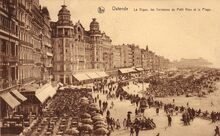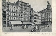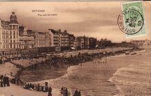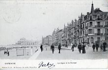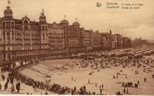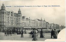 De Zeedijk gezien vanaf het Kursaal richting het Koninklijk Chalet. Het grote hotel op de hoek met de Berlijnstraat is Hotel Continental. De Berlijnstraat werd omstreeks 1919 gewijzigd in IJzerstraat, ter herdenking aan de Slag van de IJzer.