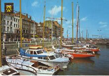 Fisa - Gedeelte van het Montgomerydok waar in de zomer veel jachten en pleziervaartuigen gemeerd liggen. Links, de Visserskaai met zijn talrijke restaurants.