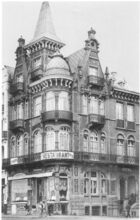 Op deze hoek was het Hoofdlokaal II van de Samenwerkende Maatschappij SEO gevestigd. Op het gelijkvloers werd een cafΓ© uitgebaat, in de volksmond "De Biercoo" genoemd. Ingehuldigd op 2 oktober 1921 en afgebroken tussen 1975 en 1976.